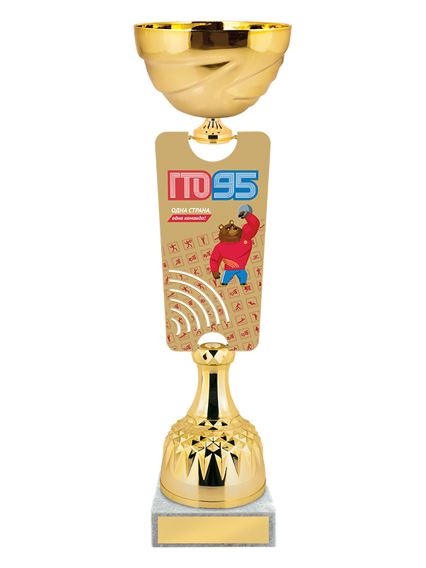 Изображение символики 95 лет ГТО на центральном металлическом элементе.