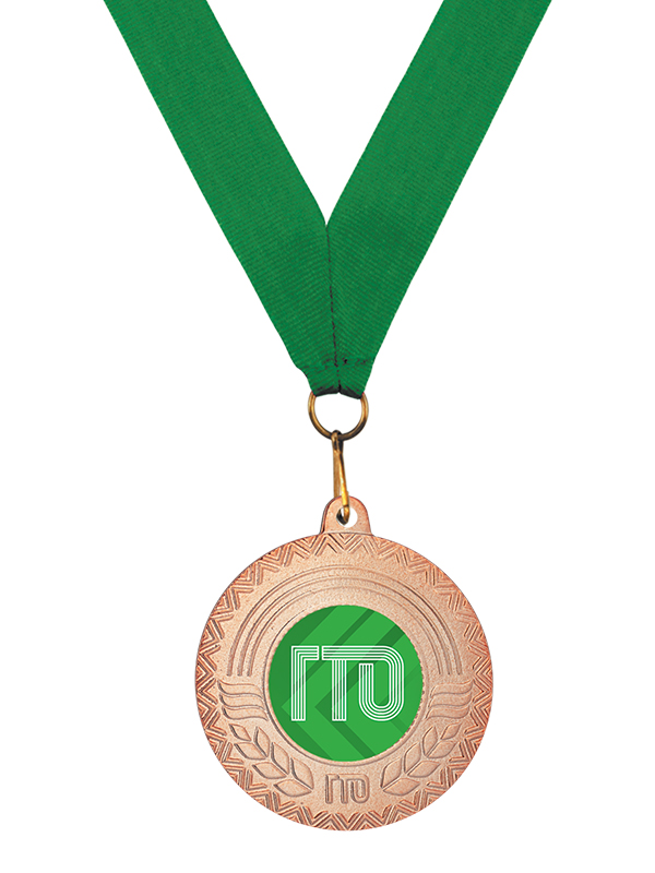 Медаль металлическая с символикой ГТО. Возможно дополнительное нанесение на реверсе.