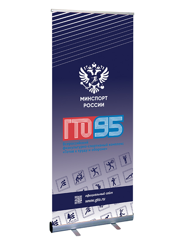 Роллерный стенд с символикой 95 лет ГТО. Материал - алюминий, баннер плотностью 440 г/м2.