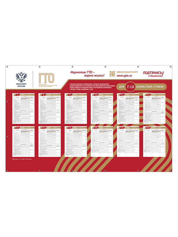 Баннер ГТО «Виды испытаний» 7-18 ступени.