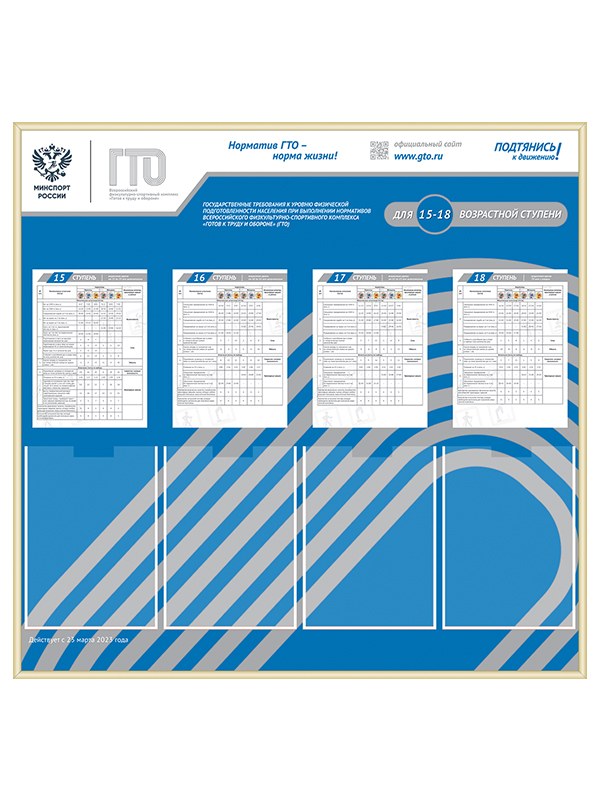 Стенд ГТО «Виды испытаний» 15-18 ступени.