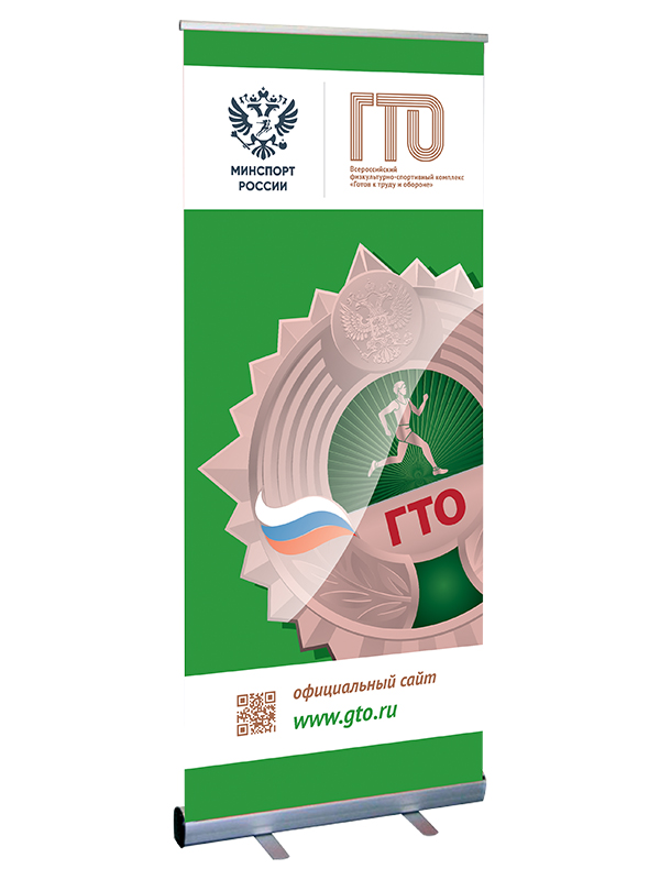 Роллерный стенд с символикой ГТО. Материал - алюминий, баннер плотностью 440 г/м2.
