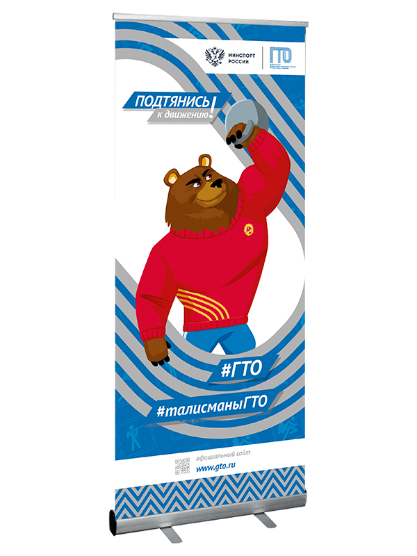 Роллерный стенд с односторонним плакатом. Возможны варианты с разными пиктограммами и символикой ГТО.