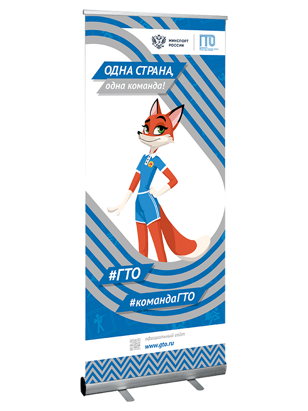 Роллерный стенд с односторонним плакатом. Возможны варианты с разными пиктограммами и символикой ГТО.