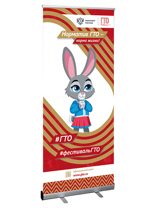 Роллерный стенд с односторонним плакатом. Возможны варианты с разными пиктограммами и символикой ГТО.