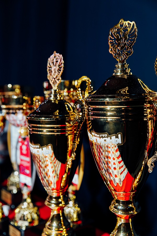 Продукцию для награждения произвели специалисты Объединения «Диалог-Конверсия». Лучшим спортсменам вручили кубки с металлическими вырезными стемами и прямой печатью разных цветов, соответствующих каждой эстафете, а также кубки с крышками и навершиями в виде логотипа Министерства спорта России.
