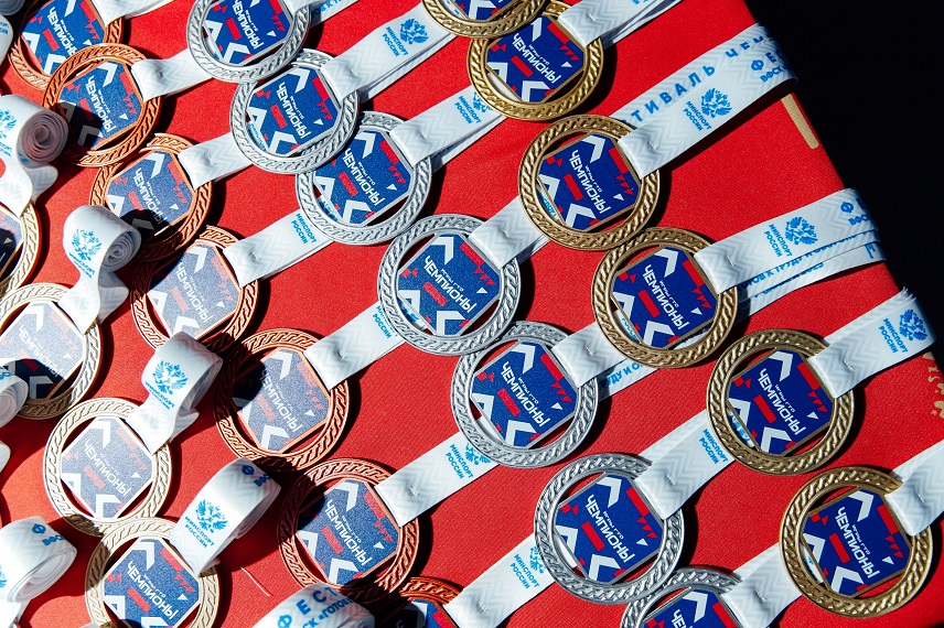 Призёры и победители стали обладателями металлических вырезных медалей золотого, серебряного и бронзового цветов на сублимационных лентах. С помощью прямой полноцветной печати на них нанесена символика мероприятия.